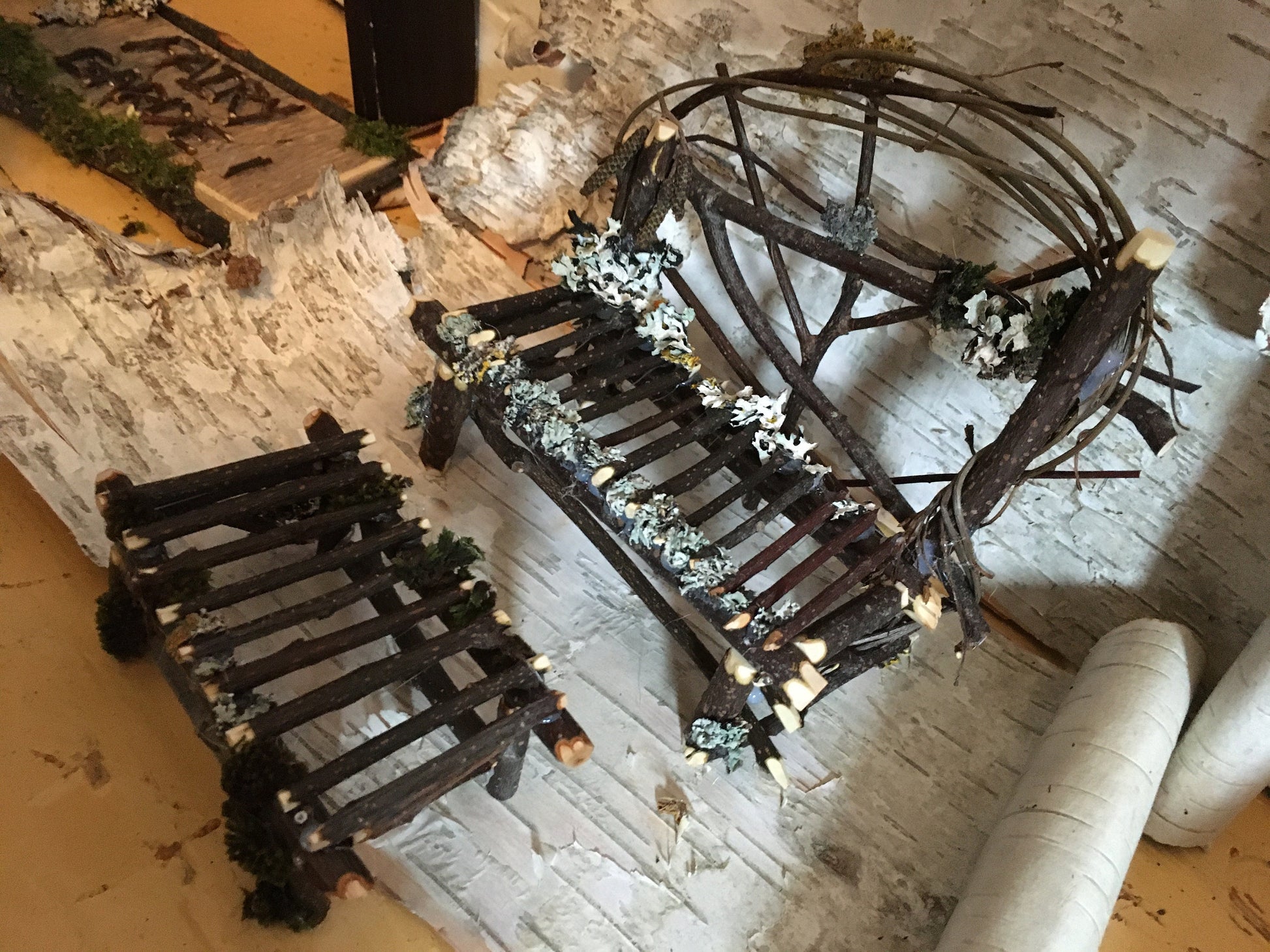 Fairy bench and table, minature furniture, fairy furniture, whimsical furniture, doll furniture, fairy bench