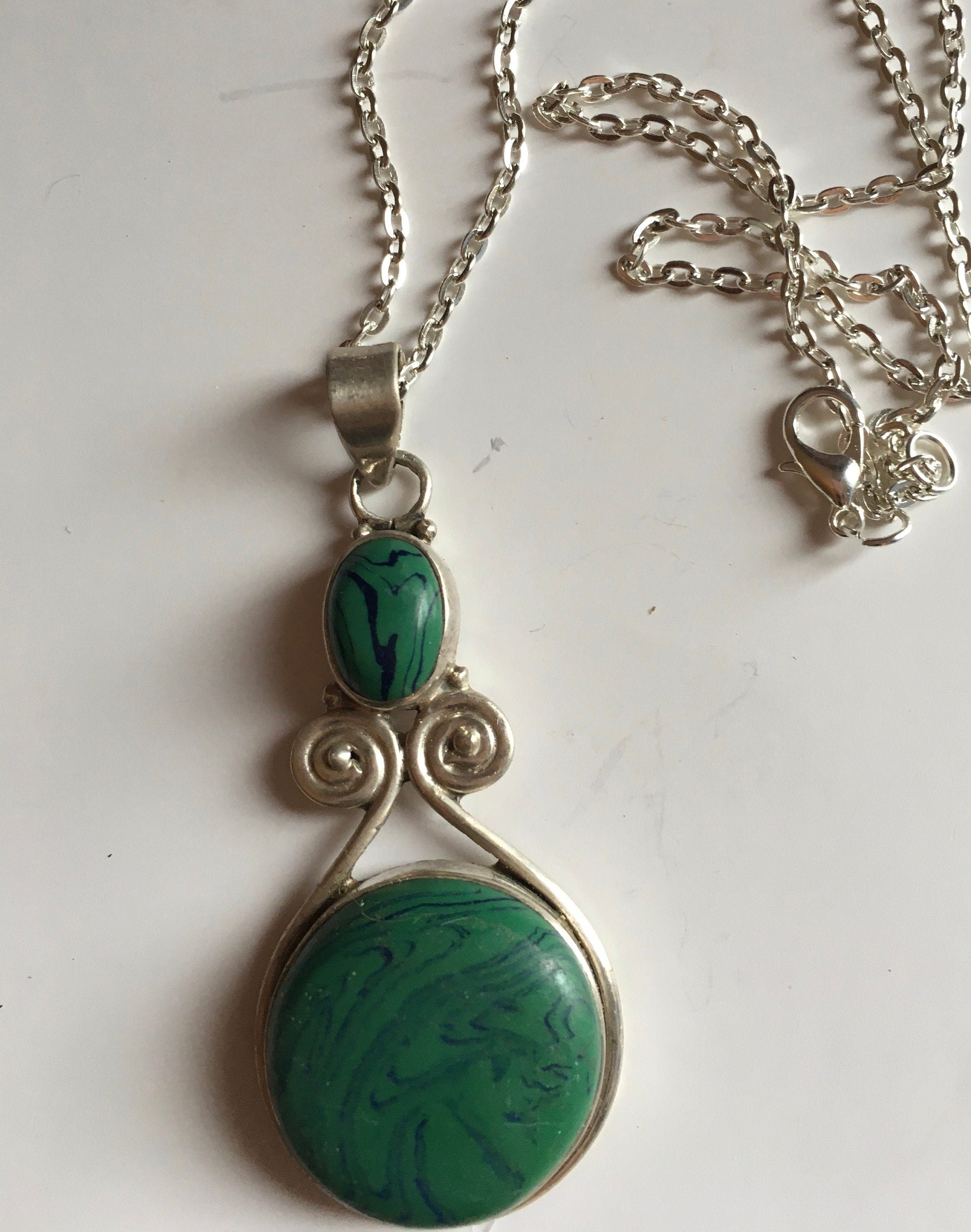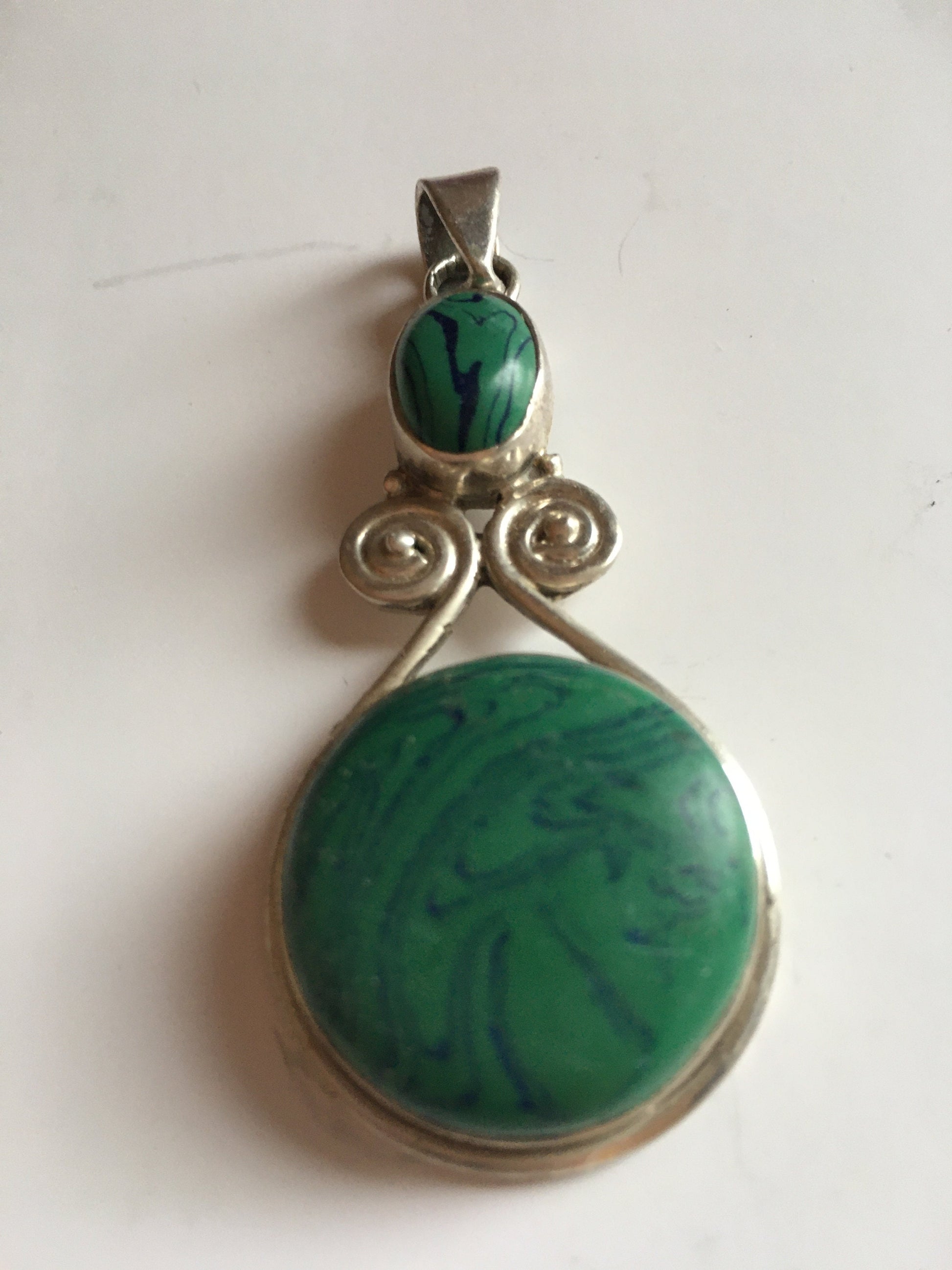 green agate sterling Silver pendant, sterling silver pendant, boho jewellery, vintage silver pendant