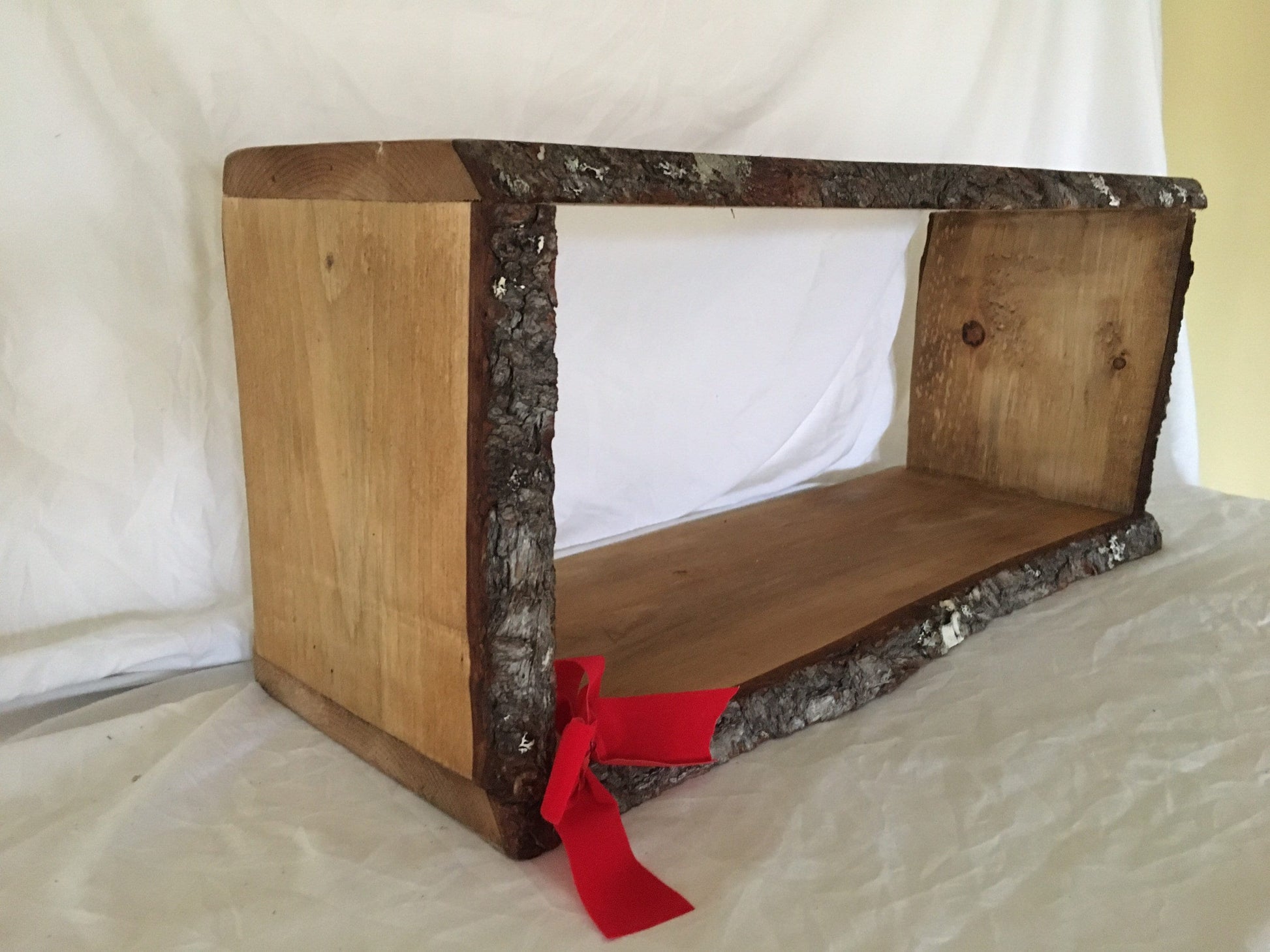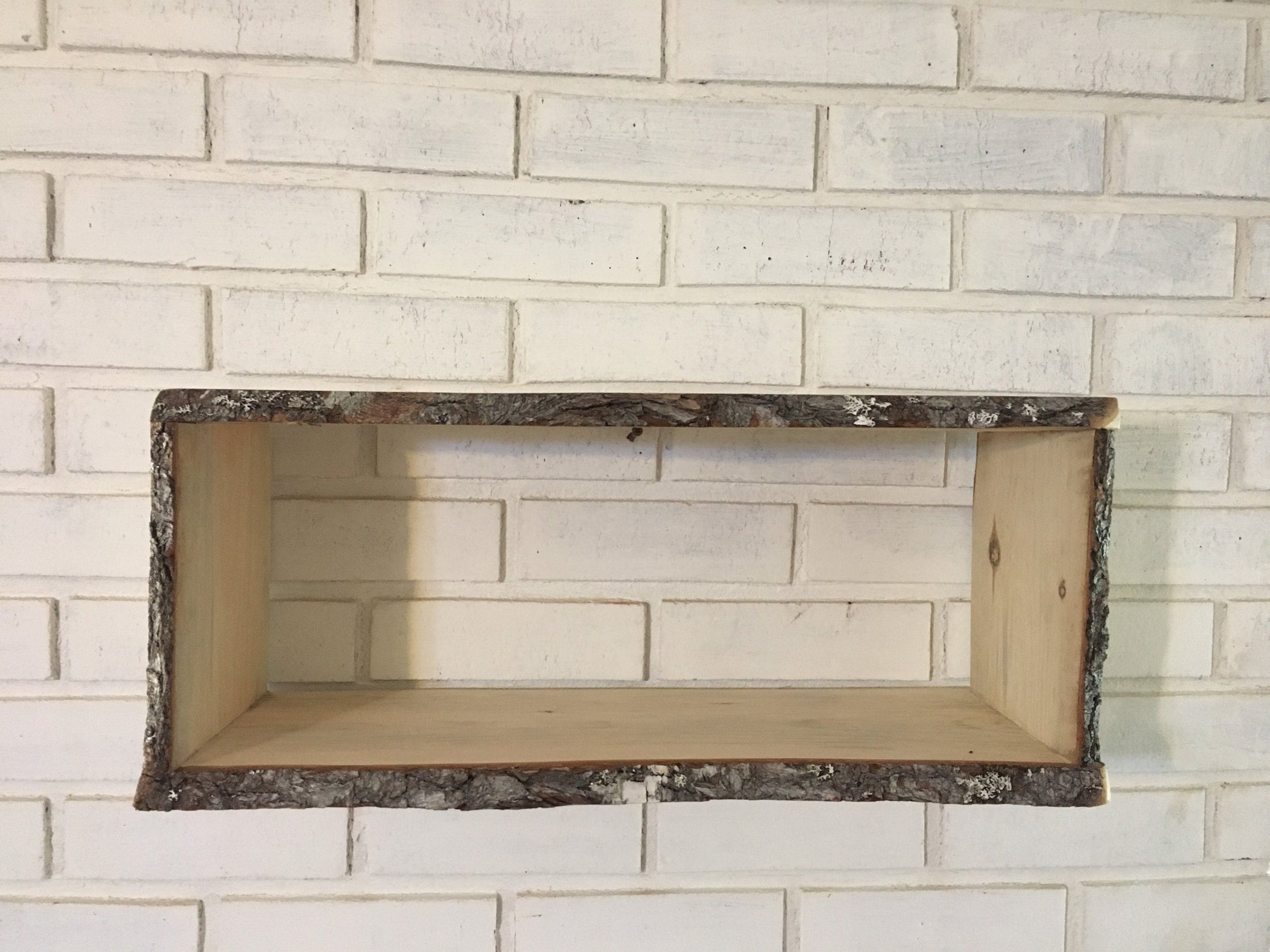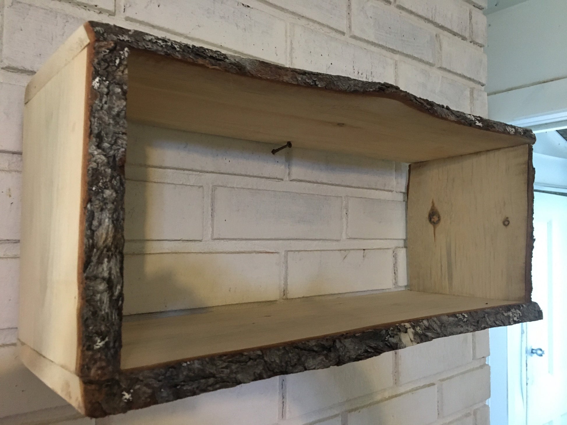 Live edge pine box shelf with the bark left on, great for hanging on the wall or sitting on a dresser