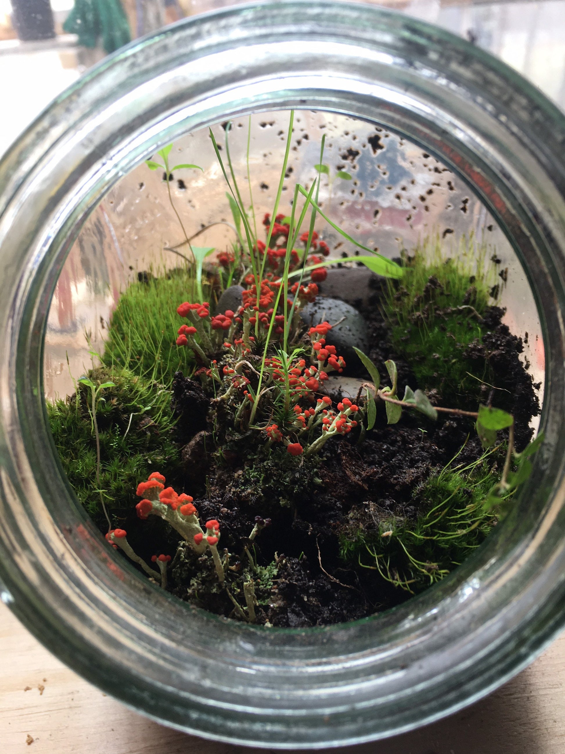 This Moss and Lichen Kit includes moss, stones, sand, and soil, along with river stones sourced from the famous Mull River in Cape Breton, Nova Scotia. When selecting the moss, I ensure a mix of different types and heights to add dimension to your terrarium or moss art piece.