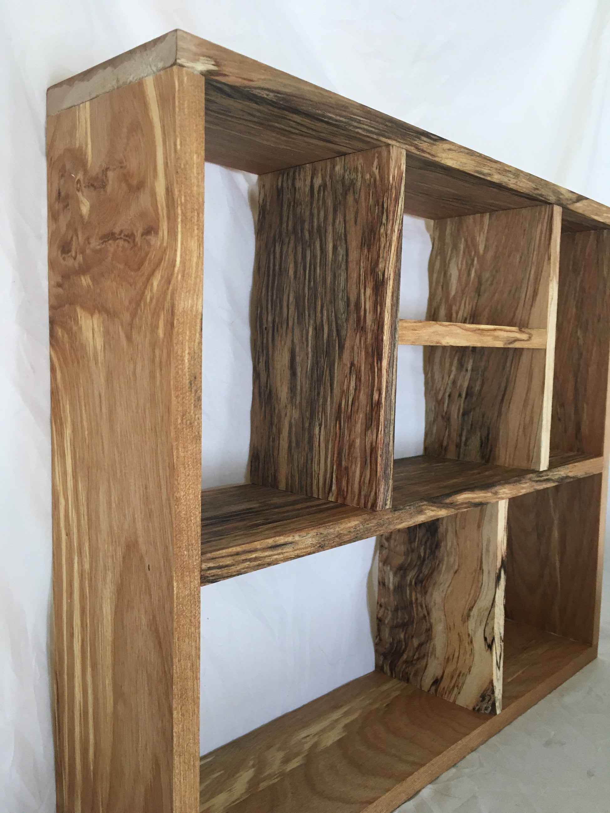 This unique altar shelf showcases the beautiful grain of spalted maple, a result of the tree’s growth in swampy, wet conditions. The natural black lines create a distinctive, one-of-a-kind look.
