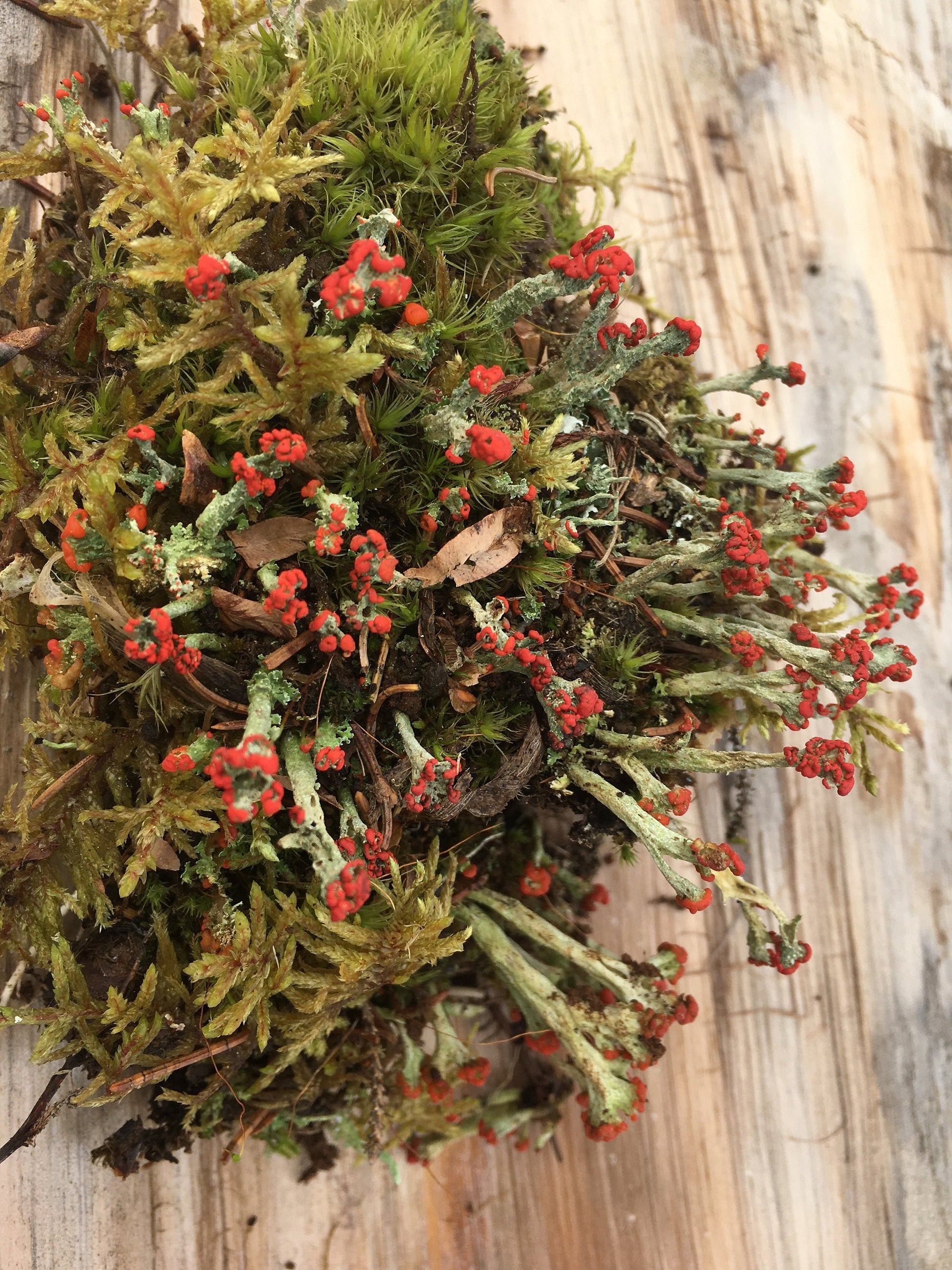 Included moss varieties may feature cushion moss, reindeer moss, old man's beard, long fiber sphagnum moss, carpet moss, pixie cups, British soldiers, and more!